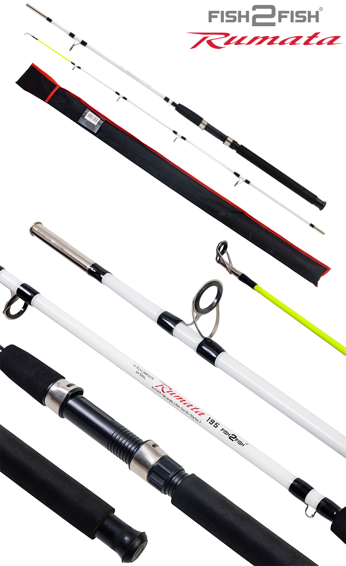 Fish 2 Fish Rumata — штекерный спиннинг (2 — ух составной) универсального назначения. Благодаря высокому тестовому диапазону может использоваться не только в спиннинговой ловле. Отлично подходит для ловли троллингом. Изготавливается из стекловолокна, благодаря чему имеет большую мощность и повышенную износостойкость при эксплуатации.