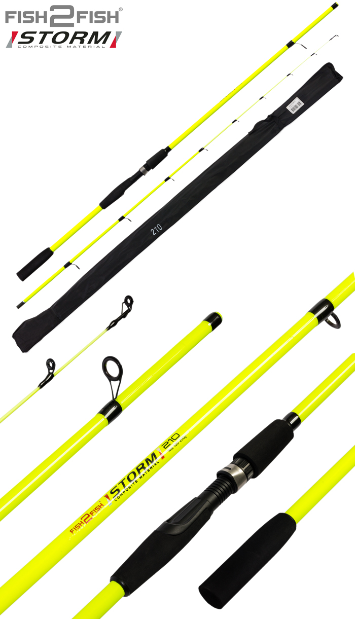 Fish2Fish Storm — штекерный спиннинг для донных видов ловли. Одинаково хорошо подходит как для ловли в заброс, так и в отвес. Быстрый строй удилища, хорошо сигнализирует о поклевке. Удилище оснащено неопреновой рукоятью и низкопрофильными облегченными кольцами Kujira XR Super Hard ZrO2 (1600-1800H,kg/mm2). Тест удилищ от 100до 200г. Размерный ряд спиннингов 1,65 м, 1,8 м, 2,1 м, 2,4 м.