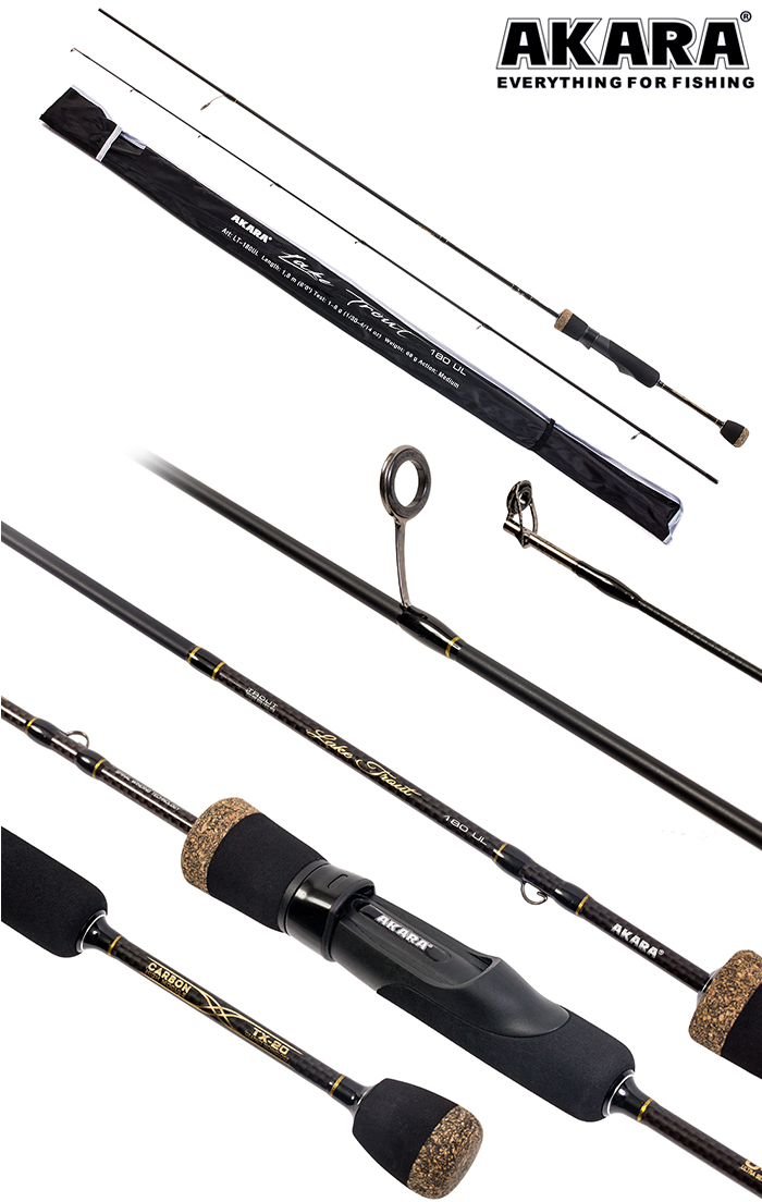 Спиннинг штекерный (угольный) 2 колена Akara Lake Trout UL (1-8) 1,8м; LT-180UL