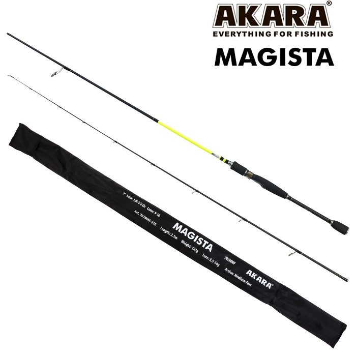 Akara Magista MMF — чувствительный на поклевке и отзывчивый на проводке солид спиннинг с бланком средне-быстрого строя. Таких характеристик удалось добиться благодаря использованию при его производстве технологии U-SENS (бланк спекается при помощи высокомолекулярной порошковой смолы, количество связующего вещества при этом удается снизить на четверть). А так же специальной геометрии бланка. Смягченный средне-быстрый строй при таком тесте делает этот спиннинг универсальным по видам ловли и диапазону использования приманок. Обладая хорошими бросковыми характеристиками, с успехом используется для ловли твичингом и равномерной проводки. Хорошо зарекомендовал себя при ловле на джиг, чебурашку и отведенный поводок.