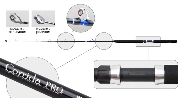 Силовой морской спиннинг для троллинга и ловли в отвес. Армированный бланк и особенности строя позволяют использовать Corrida в самых тяжелых условиях (повышенные нагрузки, отрицательная температура). При вываживании рыбы хорошо гасит ее рывки, прекрасно справляется даже с трофейными экземплярами. Тюльпан выполнен в виде специального пропускного ролика, стойкого к коррозии. Усиленные пропускные SIC кольца. Съемная ручка. Оконечность рукояти оснащена крестом-фиксатором осевого вращения.