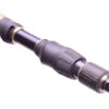 Для максимального сохранения рабочих характеристик жесткого, быстрого и при этом короткого бланка и в то же время для обеспечения удобства транспортировки был найден удачный компромисс: стык находится не посередине, а ближе к комлю, то есть, в той части,де он меньше всего может сказаться на строе удилища.