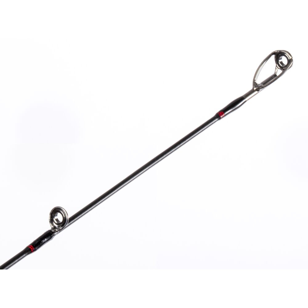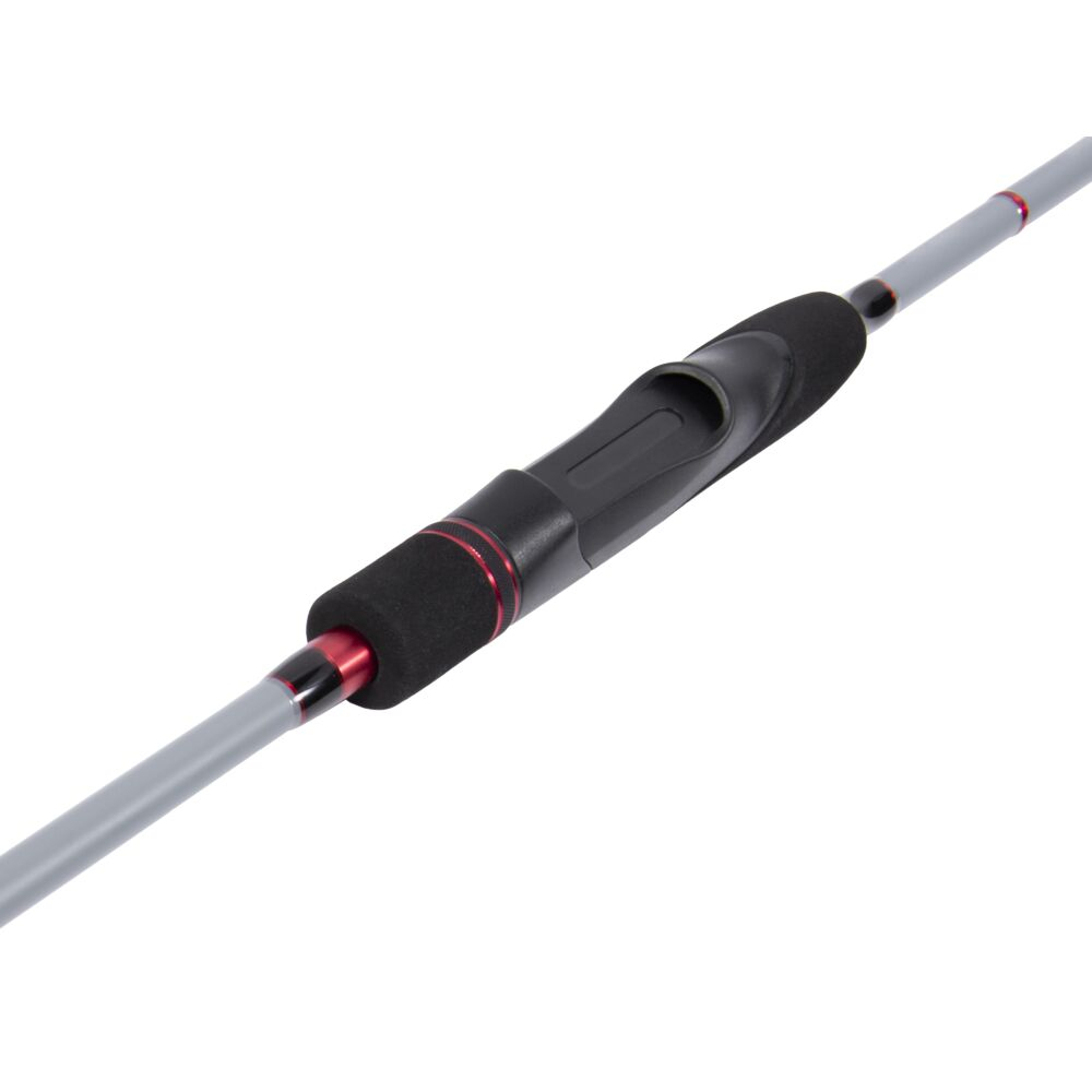 Надёжное шпиготное соединение колен удилища обеспечивает плавность изгиба бланка под нагрузкой. Кроме того, такое соединение отлично держит соосность, не позволяя коленам прокручиваться относительно друг друга во время рыбалки. Эргономичная разнесённая рукоять отлично лежит в руке и позволяет виртуозно анимировать используемые приманки.